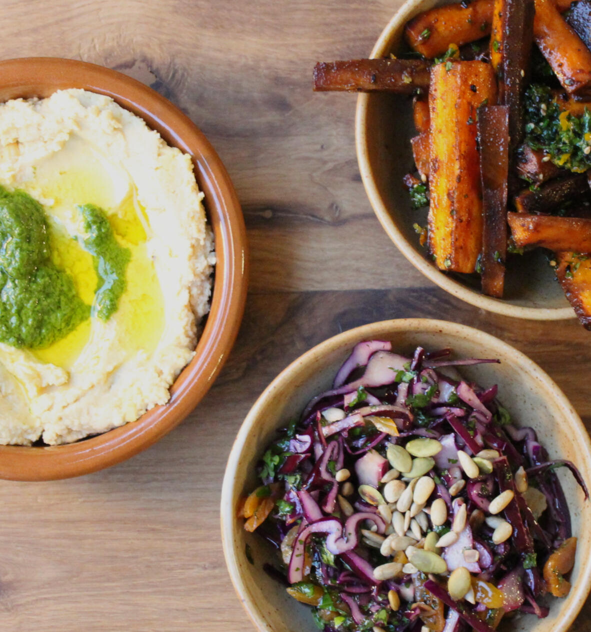 samedi 7 et dimanche 8 marsdal de lentilles au lait de coco chaud; curry d’aubergines rôties, poivrons rouges et tomates chaud; taboulé de quinoa à la grenade et aux herbes ; salade de pommes de terre, artichauts et olives ; houmous au pesto de coriandre.